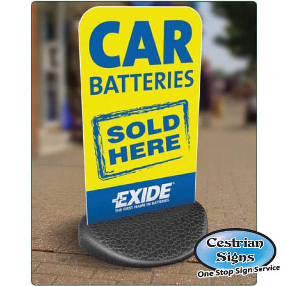 Our sturdy pavement sign base has a slot to fit a 1.2 mm thick aluminium sign.