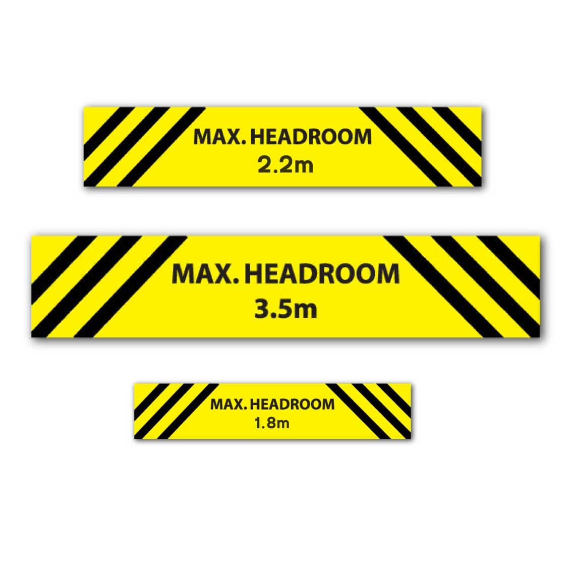Max headroom sign size | 1000 mm x 150 mm, 2000 mm x 100 mm, 1220 mm x 100 mm, 1220 mm x 150 mm, 1220 mm x 200 mm, 2000 mm x 200 mm, 2000 mm x 150 mm, 2440 mm x 200 mm, 2440 mm x 300 mm |