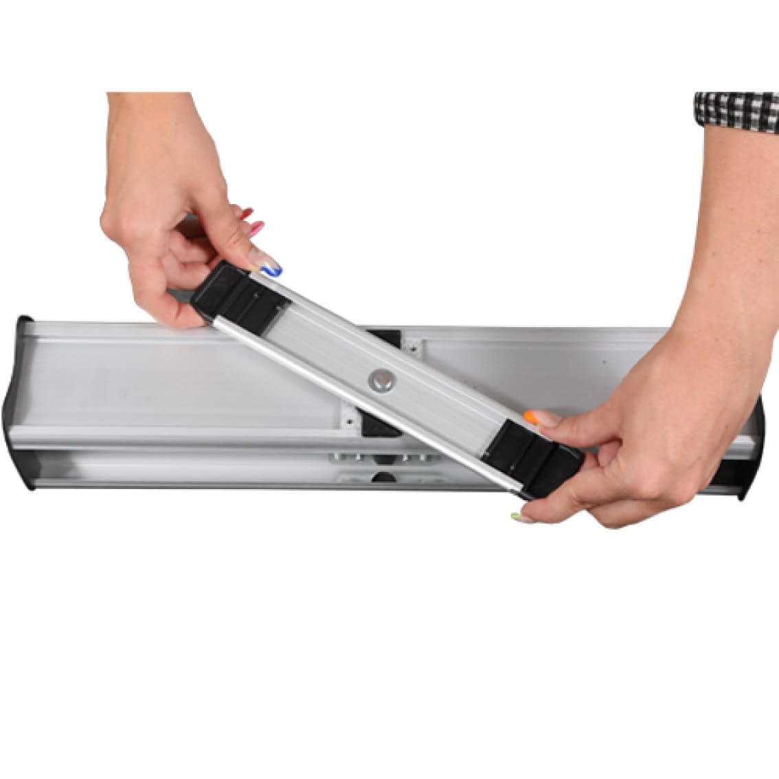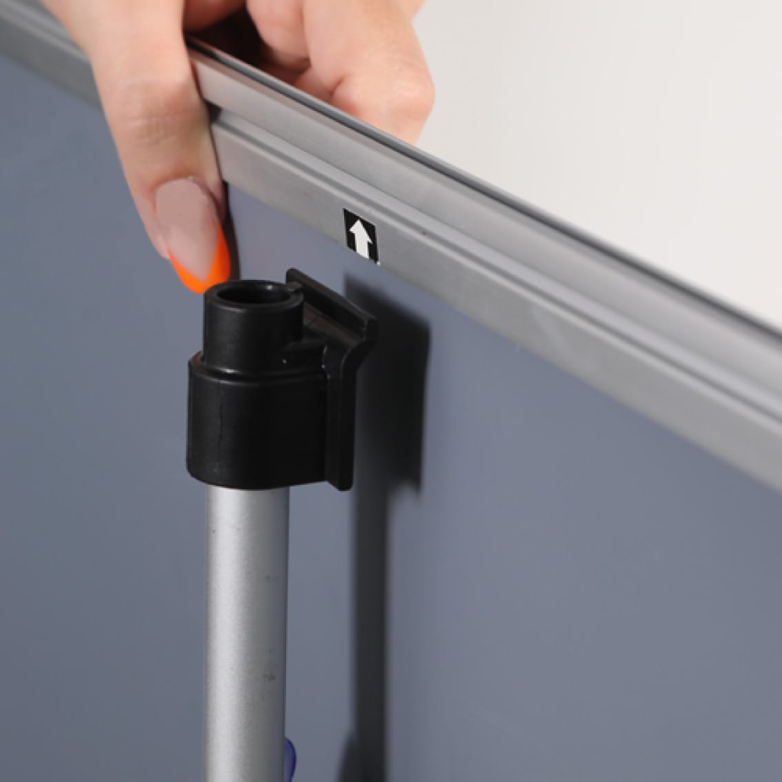 Visible banner area, just 600mm width and 1600mm to 2000 mm height – our most compact roller banner.