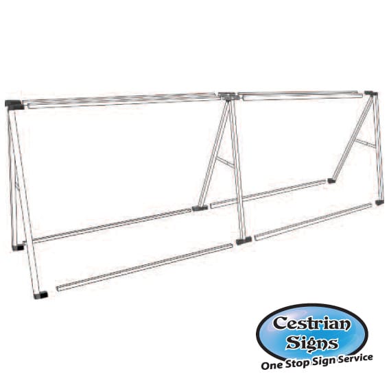A large format banner ‘A’ frame made from lightweight aluminium, ideal for use with PVC eyelet banners.