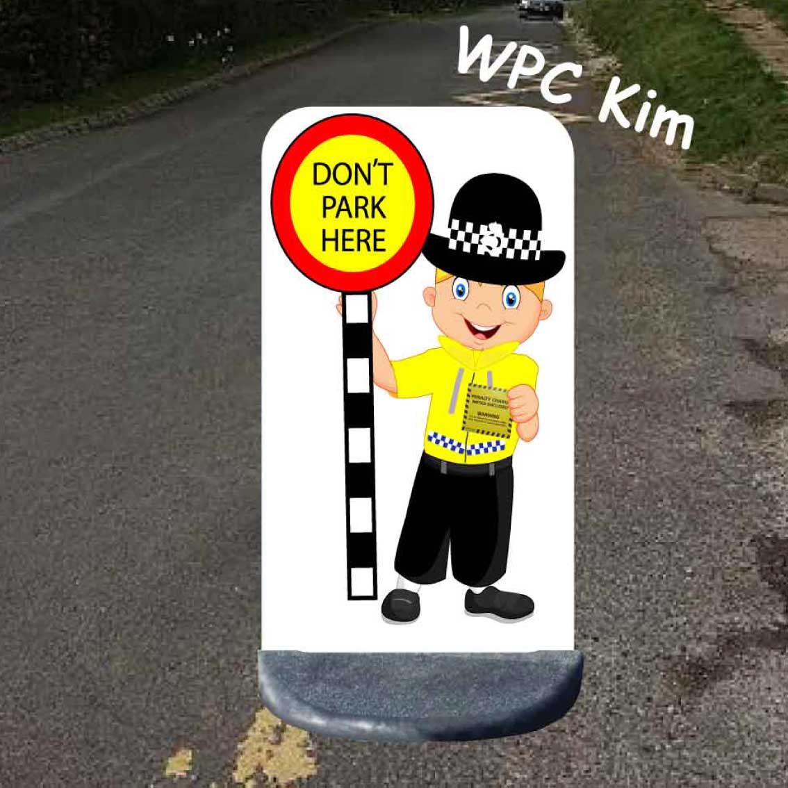 This is our Police lady School no parking pavement sign.