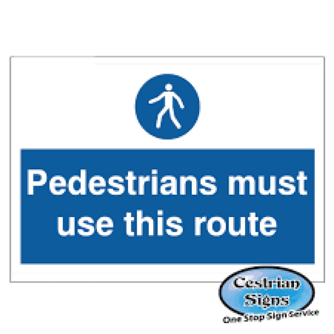 Pedestrians must use this route stanchion signs 600mm x 450mm