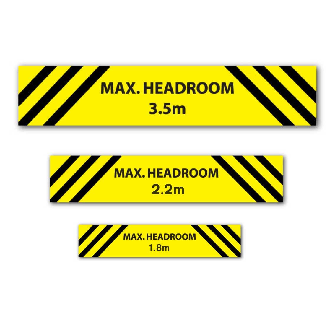 Max headroom sign size | 1000 mm x 150 mm, 2000 mm x 100 mm, 1220 mm x 100 mm, 1220 mm x 150 mm, 1220 mm x 200 mm, 1800 mm x 300 mm, 2000 mm x 200 mm, 2000 mm x 150 mm, 2440 mm x 200 mm, 2440 mm x 300 mm |