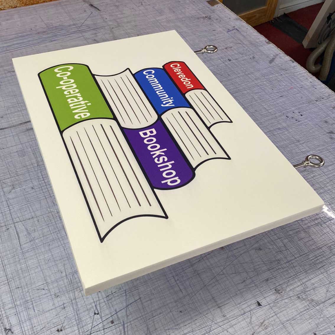 Our hanging shop signs can be made any shape any colour any size.