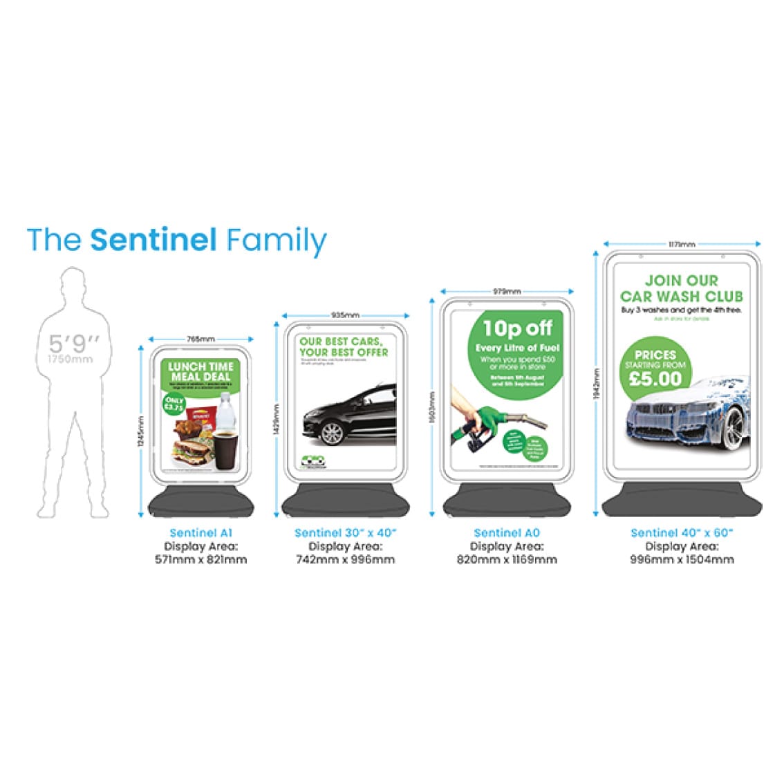 For outdoor use. display area 40 x 60 inch 1016 mm x 1522 mm.