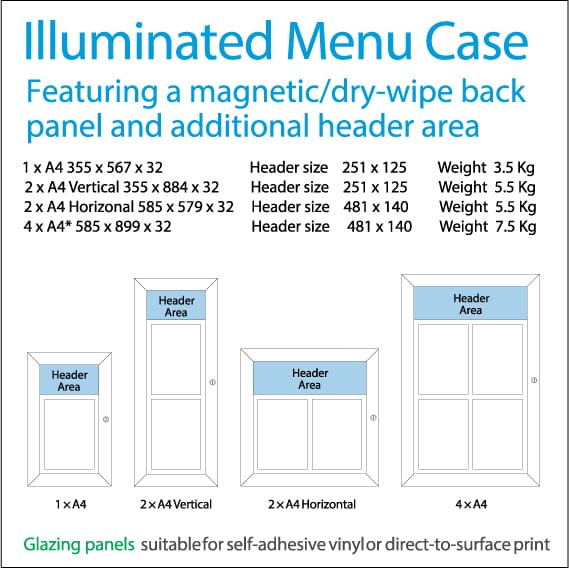 Slimlok 3 Illuminated Menu Case, size 2 x A4 Vertical from Cestrian Signs